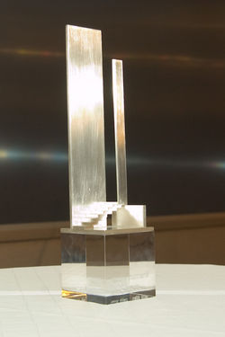 Symbol dieses Preises ist die vom Bildhauer Sepp Auer entworfene handgefertigte Skulptur „Scala Humana“.
